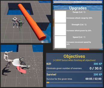 Complete levels and receive upgrades in the form of new weapons, upgrades, or skill points (to spend in a skill tree). Use these upgrades to fight stronger and stronger enemies, eventually reaching a final boss to win the game.